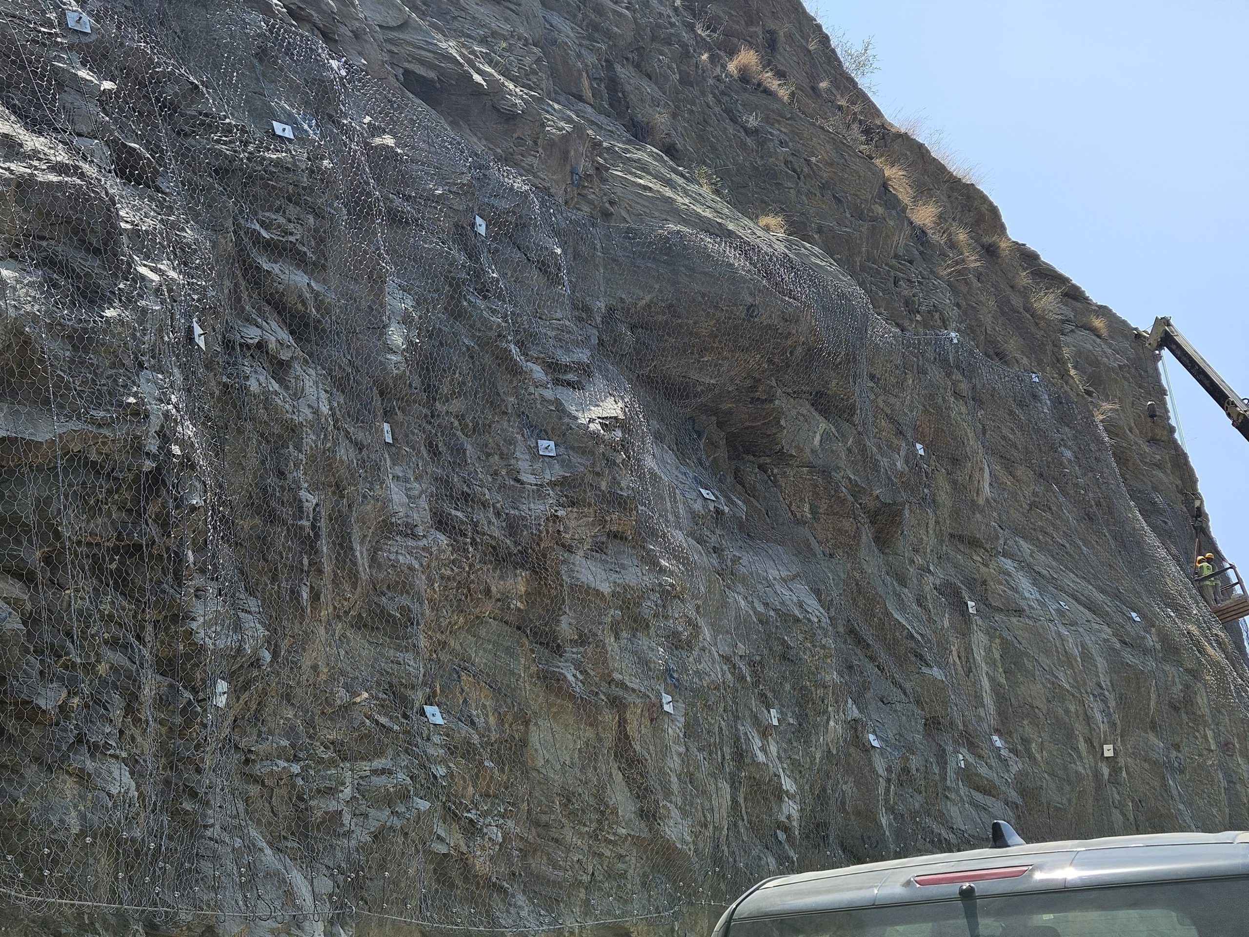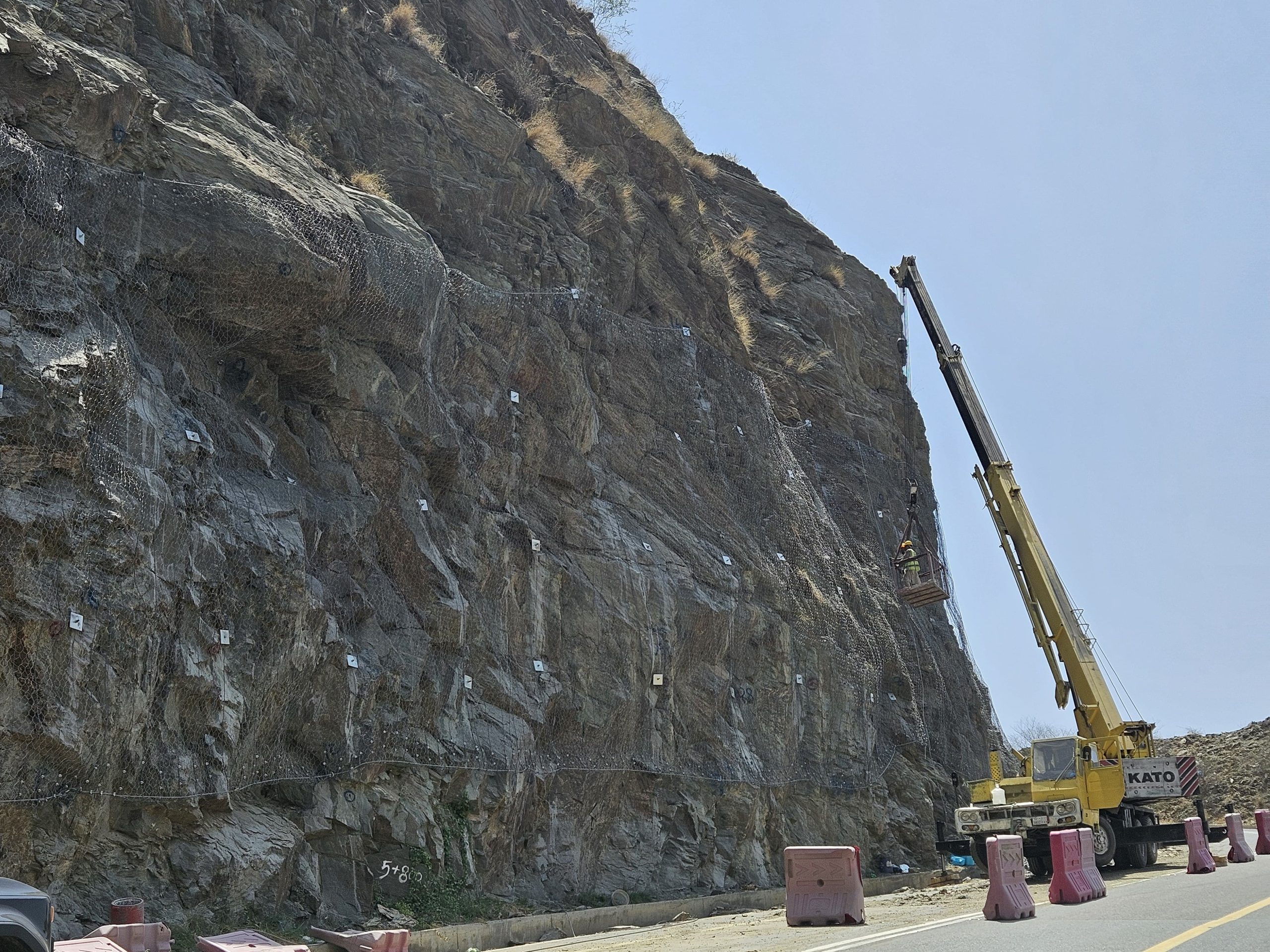 To address the rockfall hazards identified in Jazan City, an integrated and engineered protection solution is proposed, combining active slope stabilization and passive rockfall interception systems. The solution is specifically designed to suit the steep mountainous terrain, fractured rock geology, and environmental sensitivity of the area. The proposed approach utilizes a combination of slope surface protection, rockstabilization, and energy dissipation systems to controlrockfall hazards at source and along potential rockfalltrajectories. This layered protection strategy ensuresenhanced safety for road users and nearbyinfrastructure. Maccaferri Steelgrid® 30 is proposed as the primary active protection system for stabilizing rock slopes and preventing rock detachment at the source. The system consists of a high-strength, double-twisted steel wire mesh designed to conform closely to the rock surface and restrain unstable blocks.