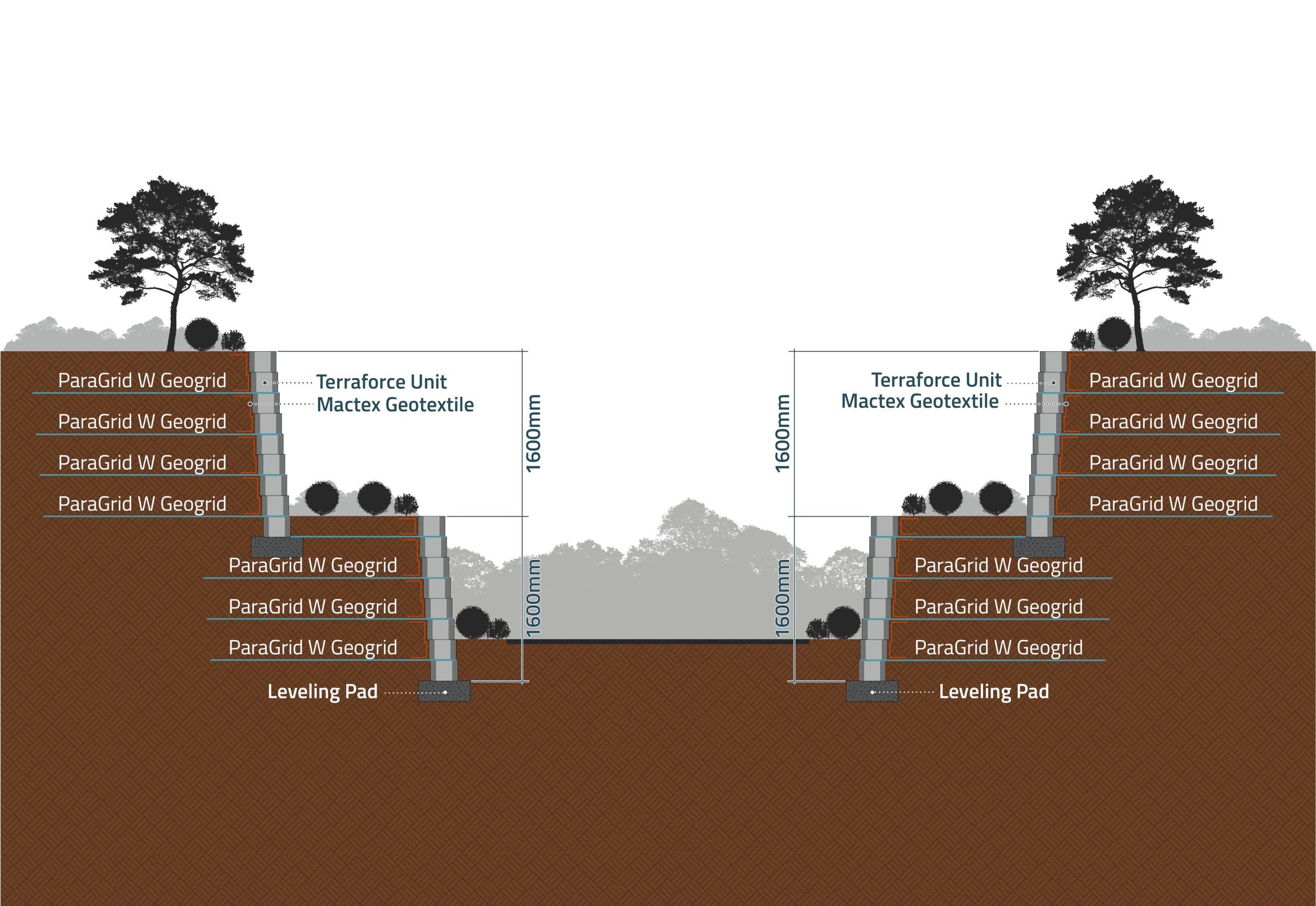 Maccaferri Middle East stepped in with a brilliant solution, their MacWall system. This system cleverly combined Terraforce concrete blocks with MacGrid WG geogrid soil reinforcement.