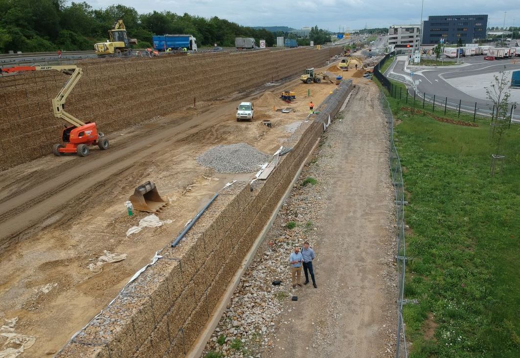Redevelopment of the Dudelange-Burange interchange, located at the intersection of the A13 motorway and the N31 national road, is part of the development of the local road network relating to the extension of business parks and urbanization areas along the Collectrice du Sud. The construction of activity zones in the North (Eurohub + CFL Multimodal Platform) and in the South (National Health Laboratory) leads to an increase in traffic that no longer allows the interchange, due to its geometric configuration, to meet safety and capacity requirements. The redevelopment of the existing interchange has two main objectives. On the one hand, it is intended to provide easy and direct access to the motorway for the planned business and urban development zones in the vicinity. On the other hand, it aims to increase the capacity and safety of this heavily loaded road junction. The designers chose a solution with reinforced soil structure due to the environmental friendliness and due to the most cost-saving solution. The support provided by Maccaferri together with the partner Texion was very well appreciated by the designers and the construction company during the pre-design and construction phase.
