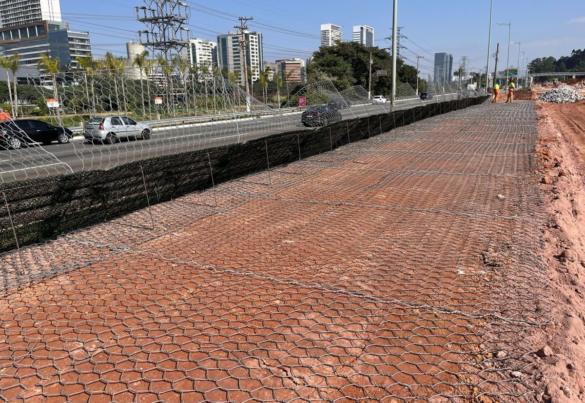 The project is a new high-end commercial and residential development situated along the banks of the Marginal Pinheiros, which is one of the main thoroughfares in the city of São Paulo. To construct the structure, it was necessary to build a retaining wall due to the 4.80-meter difference in elevation between the natural ground level and the project’s level.