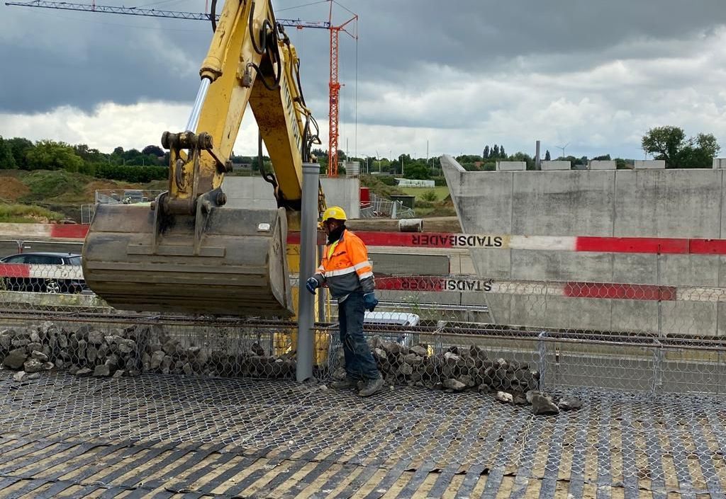 The Oosterweel Link project is a new 15km-long motorway connection developed by Lantis for completing the Antwerp ring road R1 (Belgium). It is a major project in Belgium and its design started in the 1990s to find a solution to the congestion problems in and around Antwerp. The total estimated cost of the project is approximately €4.5bn. The Antwerp ring road is a key part of the Trans-European Transport (TEN-T) Core Network. Maccaferri collaborated with the design and building of the Mechanically Stabilized Earth (MSE) walls with its main product family „Terramesh“. This is a well-known system used in Europe and in the rest of the world to support or enable the construction of infrastructures in tight urban corridors, forming retaining walls, road embankments, wing walls and bridge abutments known as Geosynthetic Reinforced Soil-Integrated Bridge Systems (GRS-IBS). „Terramesh“ double twist steel wire mesh reinforcements have been used in combination with ParaLink® and Paragrid® geogrids representing an evolution and a significant advantage for both cost-effectiveness and performance. The project includes 15.000 facing sqm of „Terramesh Green®“, 14.000 facing sqm of „Terramesh Mineral® and System® and 5.000 facing sqm of gabion cladding. During 2020, 6.000 sqm of MSE walls have been already installed with a maximum height of 6.5m for the structures erected so far. The Terramesh products can be either with a stone mineral facing or a green facing, according to the architectural plan: in Oosterweel for architectural reasons, most of the structures present a stone facia.