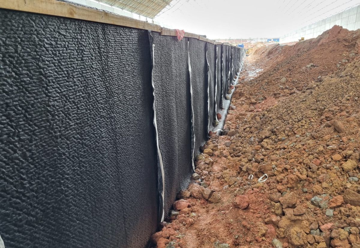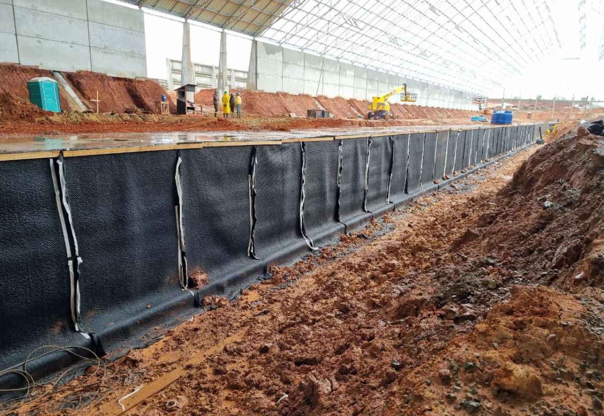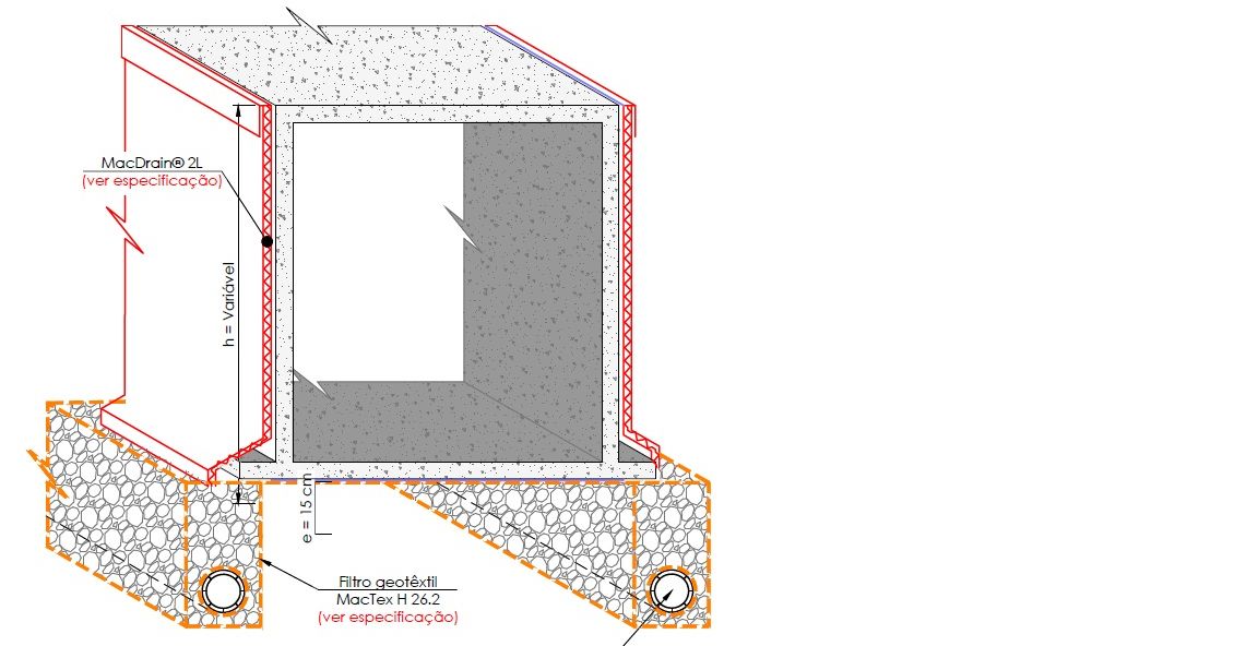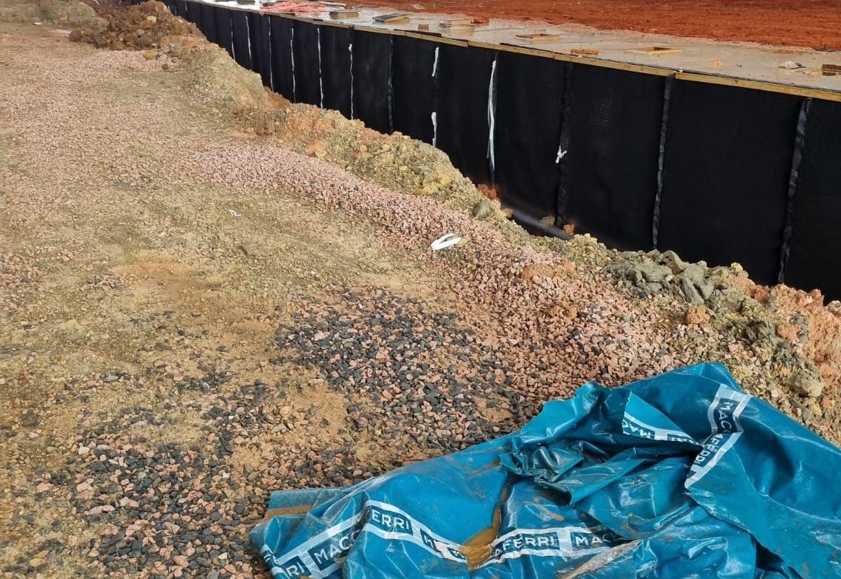 A Lavitta foi a construtora escolhida para realização da obra. Devido a sua experiência para condições desfavoráveis e conhecendo os riscos de acúmulo de água nas estruturas semi enterradas, chamou a Maccaferri para desenvolver um auxilio de projeto. Foi prevista uma impermeabilização com manta asfáltica e na sequencia a drenagem foi executada com Gecomposto Drenante Macdrain somado a um dreno de brita instalado na base da estrutura, permitindo assim que o sistema pudesse estar adequado as condições de qualidade e aumentando a estanqueidade e proteção da estrutura.