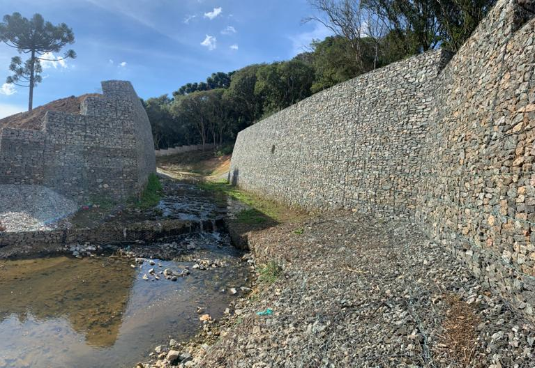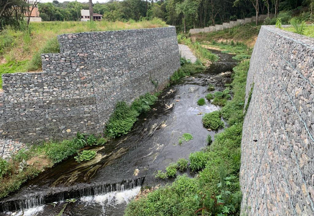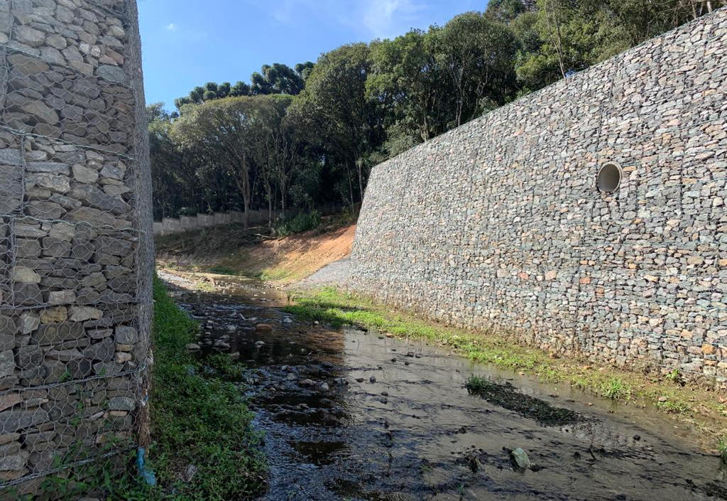 A obra de macrodrenagem no Ribeirão dos Muller teve por objetivo ampliar a área do fundo do canal existente e fazer a regularização da sua inclinação de fundo com obras de alargamento e reperfilamento do canal, construção de diques de contenção e implantação de estruturas de controle de vazão. Para que o sistema de drenagem funcione com a detenção necessária e dimensionada, foram feitas quatro estruturas de controle ao longo do Ribeirão dos Müller, para regular não somente as cheias do próprio Ribeirão quanto do Rio Barigui também. Essas estruturas foram executadas em gabião.
