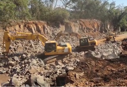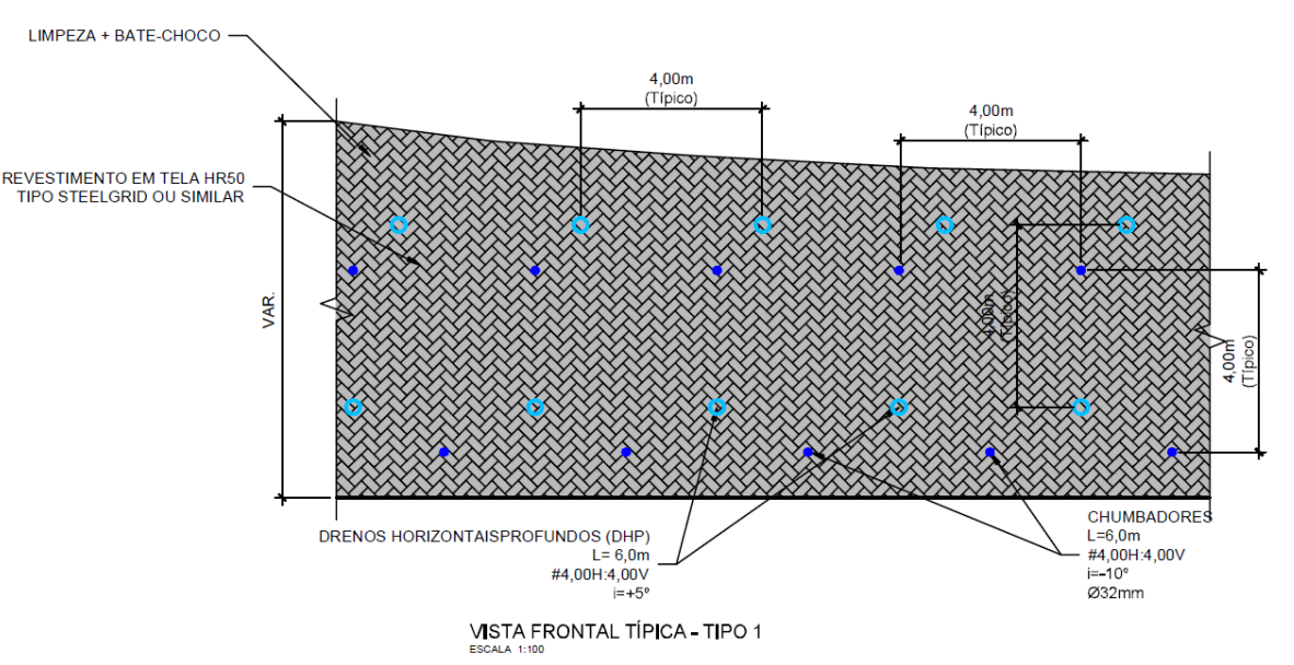 Devido a implantação da 3ª faixa da rodovia BR-277, entre o km 522+900 ao km 524+300 (Faixa 13), houve um desmonte de rochas com fogo controlado e foi colocado em projeto que o talude rochoso final deveria ser revestido e grampeado.