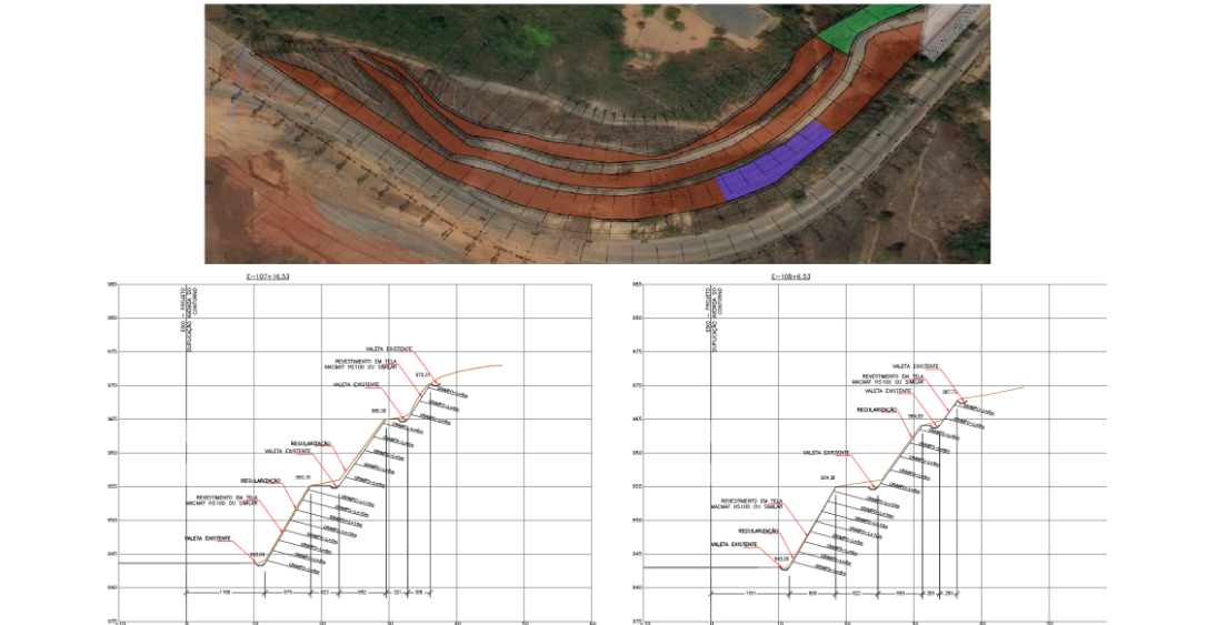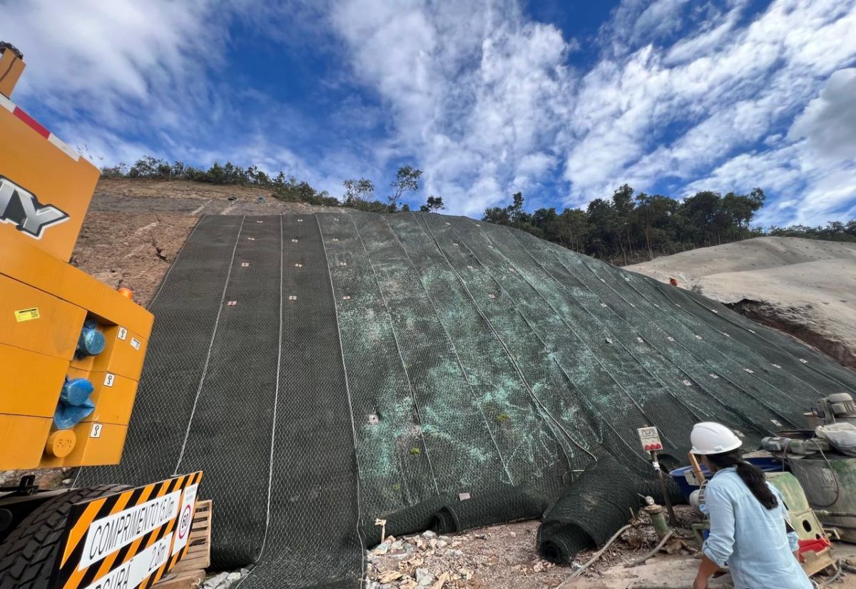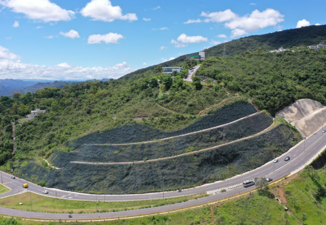 A proposta de estabilização do talude por meio da implantação de painéis de solo grampeado com face em tela de alta resistência, como o MacMat HS 100 foi a solução adequada e eficaz para a situação descrita. Essa solução integra técnicas de reforço mecânico e proteção contra erosão, duas necessidades cruciais no contexto da rodovia de Nova Lima.