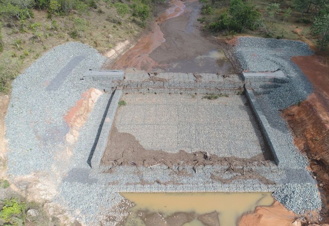 Para controlar o fluxo hídrico e mitigar o passivo ambiental, foram necessárias diversas obras de contenção, incluindo a construção de escadas dissipadoras e barragens em gabiões caixa. Essas intervenções foram cruciais para mitigar os efeitos adversos causados pela alteração da drenagem natural e pelas erosões, que ameaçam a estabilidade do solo e o ecossistema local. As escadas dissipadoras ajudam a dissipar a energia da água, minimizando seu impacto erosivo, enquanto as barragens em gabiões estabilizam o terreno e evitam a perda de solo.
