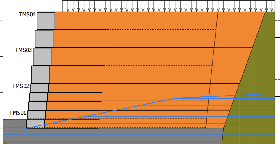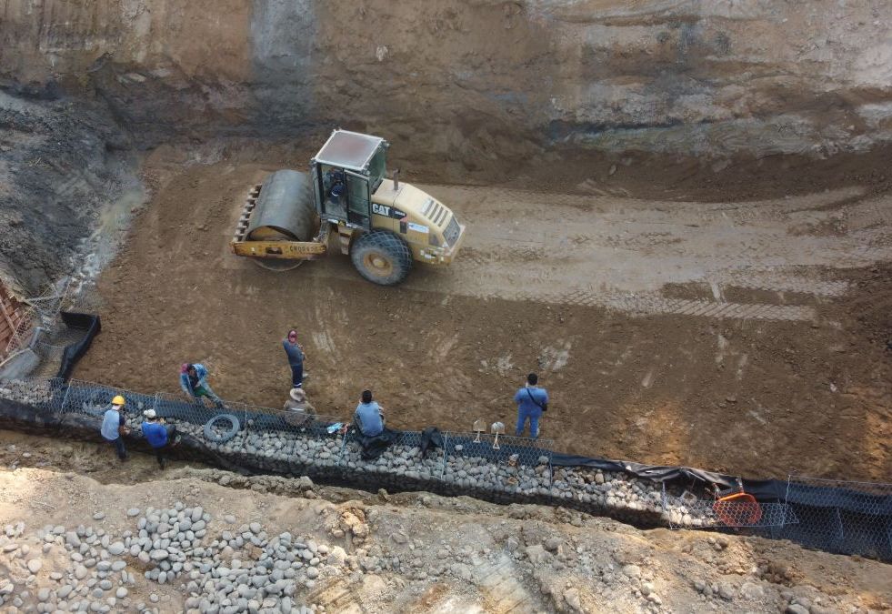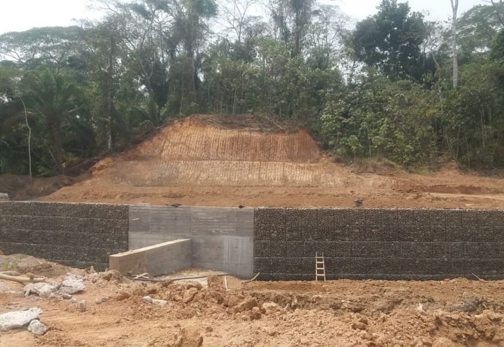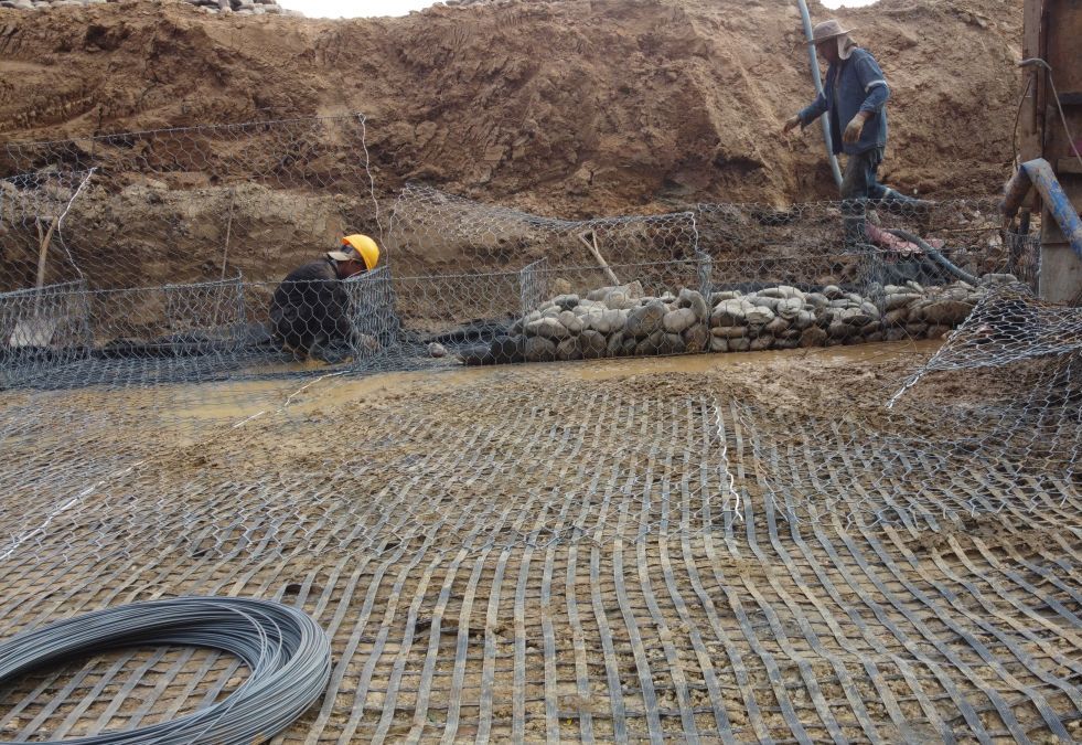En la etapa de diseño, se propuso al consultor una estructura de Terramesh Polimac + Geomalla debido a la baja capacidad del suelo disponible, con una altura de 6 metros de altura, junto con colchones reno Polimac.