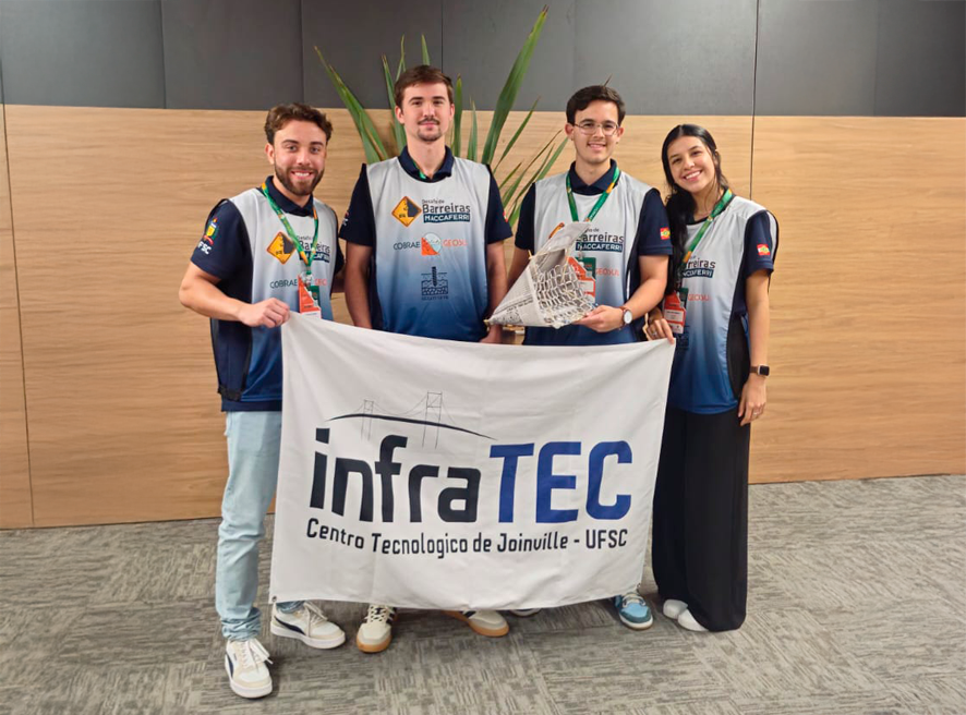 Organizado pelo dedicado time do GEGEO – UFPR, o desafio propôs a construção de um modelo em escala reduzida de uma barreira de contenção. A iniciativa teve como foco incentivar a inovação, aproximar os estudantes de problemas reais da engenharia e transformar em prática os conhecimentos adquiridos em sala de aula, reforçando que eles são os engenheiros que estarão à frente das soluções de amanhã.