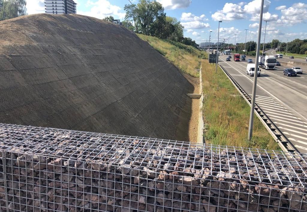 Mainly, four different types of facing inclinations have been used for this project: 27°, 34°, 45° and 60° The main product used is Terramesh Green Light that was produced specifically to meet the design requirements and slope inclinations. The project included also welded gabions walls and RSS built using EPS blocks to reduce the weight of the walls since the poor bearing capacity of the soil in situ. The construction took place between May 2019 and November 2019. In May 2020 the slopes were already completely vegetated.