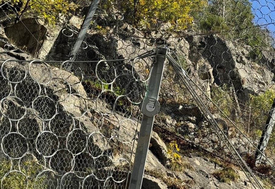 17pcs of HELLOMAC sensors were installed on the posts of the dynamic barriers. These sensors represent an early warning system developed for monitoring measures and systems designed to protect against falling rocks.