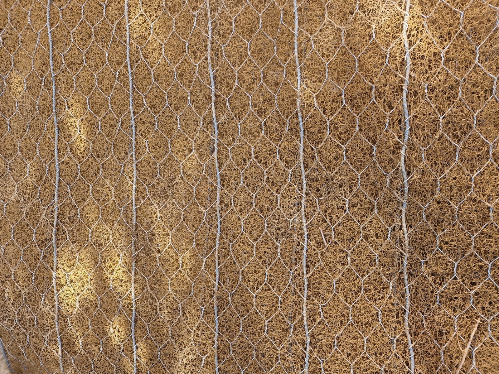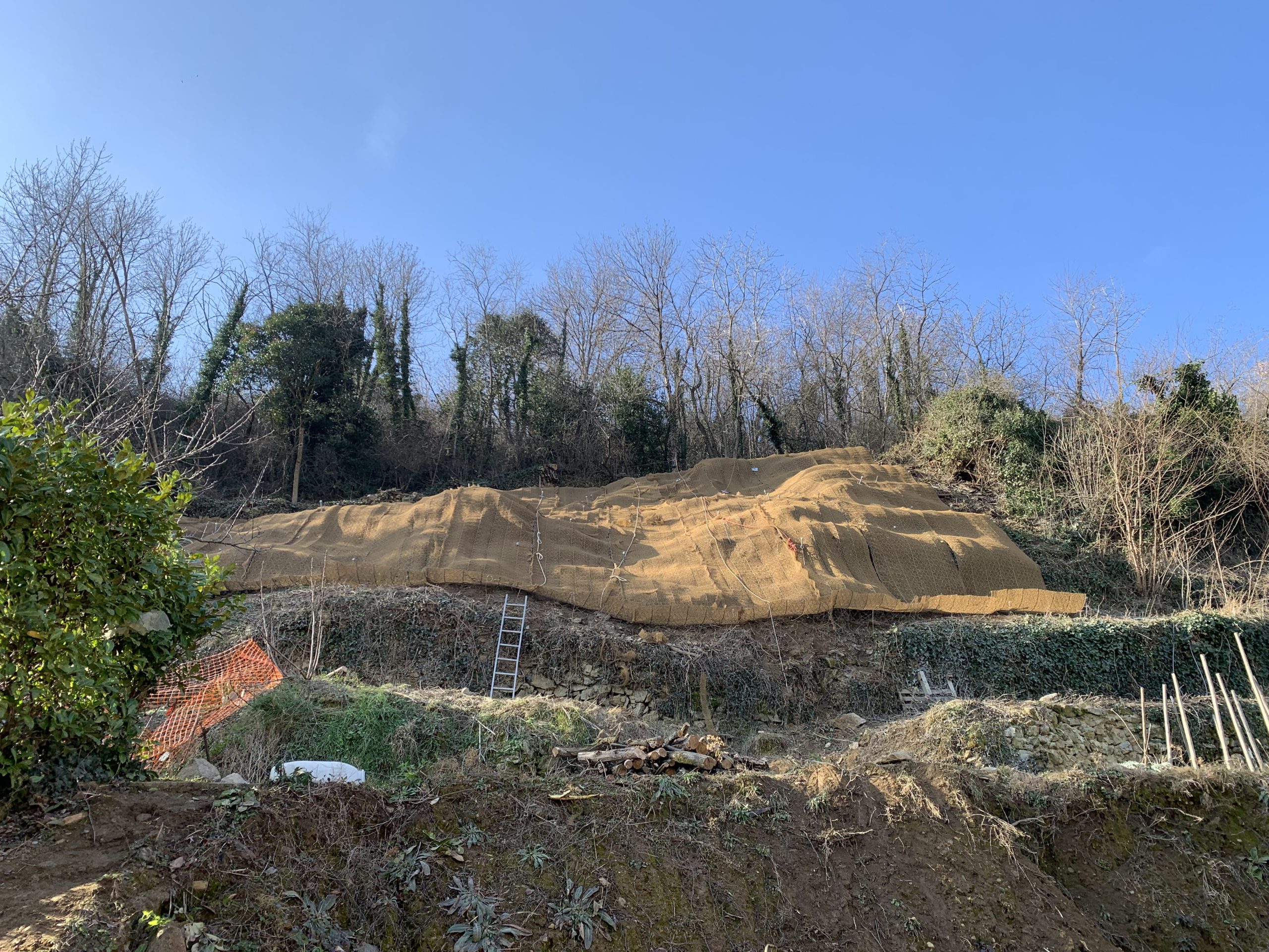La Société France Maccaferri a proposé son MacMat® HS30, certifié CE, qui combine les 2 produits conseillés par la maitrise d’ouvrage : un grillage à haute résistance et une géogrille tridimentionnelle. Le MacMat® HS 30, grillage à haute résistance, est un produit composite spécialement destiné aux parements structurels flexibles dans des applications de sol cloué. Il associe en usine, un grillage à haute résistance Steelgrid® (grillage double torsion renforcé par des câbles métalliques insérés longitudinalement dans le grillage à des espacements variables) à un géomatelas MacMat® en polypropylène. Ce grillage composite présente une résistance élevée à la traction (jusqu’à 180 kN/m), tout en assurant une protection locale contre l’érosion superficielle en facilitant la poussée de la végétation. Les fils sont revêtus de GalMac C2 (alliage Zn95/Al5) de classe A conforme à la norme NF EN 10244-2:2009. Sur le chantier, un hydro-ensemencement a été prévu afin de favoriser la repousse de la végétation.