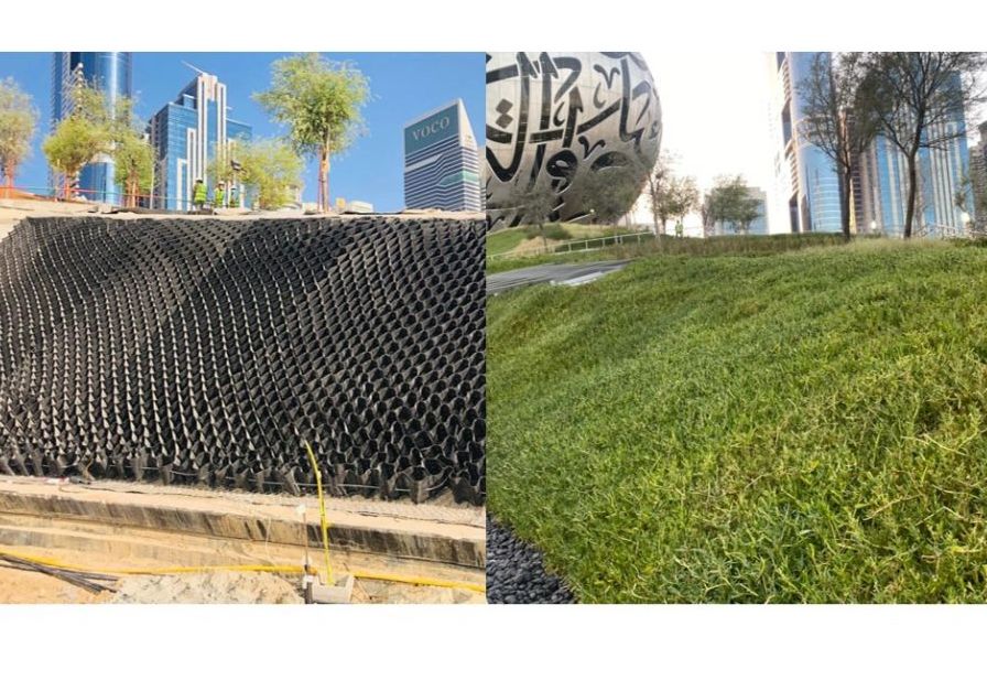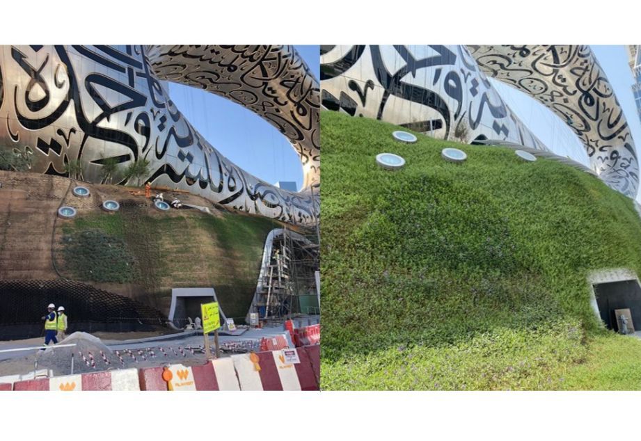 The Museum of the Future (MOTF) is a unique initiative by the Dubai government that explores the future of science, technology, and innovation and will be located at a prime spot in Sheikh Zayed Road and near the Burj Khalifa. The architect ‘Kila’ designed MOTF in three main parts: the lower green hill, the upper building, and the elliptical void, representing earth, mankind & innovation, respectively. The inspiration for the green hill was also to elevate the building calmly and unobtrusively above the metro line and create greenery in elevation where visitors can enjoy while engaging with the Museum. The green hill is to be done through a smooth transition from the site as an earthen, vegetated mound with a minimal visible built intervention. A three-story podium structure will be embedded inside the green hill, which will house the lobby, auditorium, cafés, restaurants, retail, car parking, etc. For the aforementioned reasons, the vegetated mount must be done as a THIN CLADDING of varying slopes rather than a solid earth hill.