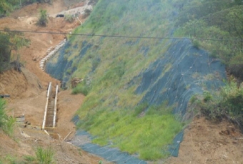 Para contrarrestar la caída de bloques se realizaron refuerzos activos en algunas partes del talud, mientras en otras se realizó una limpieza del material suelto e inestable presente en la superficie. Se aplicó un revestimiento superficial flexible con pernos de anclaje y MacMat® R1 de alta resistencia. El MacMat® R1 tiene la función de controlar la erosión, el flujo de detritos y favorecer la revegetalización del talud.