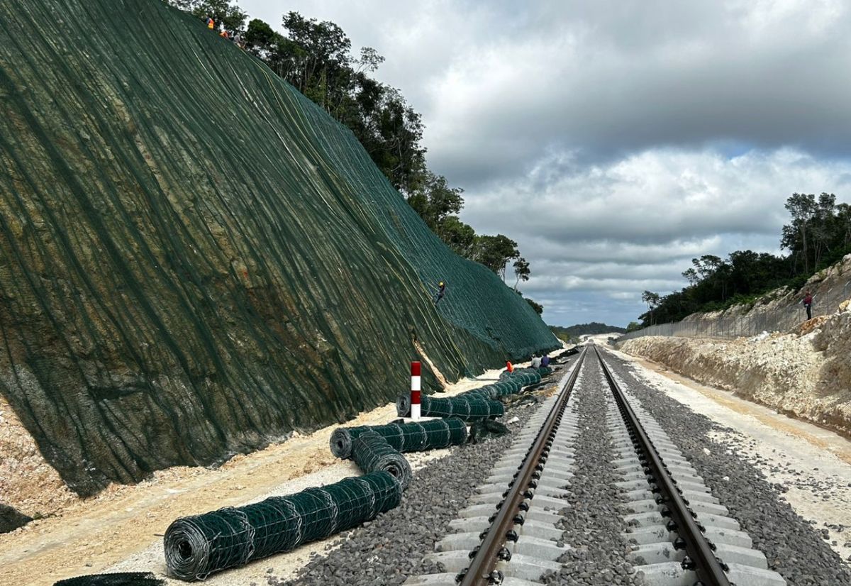 En la construcción del tren Maya tramo 2 de Escárcega a Calkiní fue necesario generar cortes para generar los espacios para el paso de la linea ferroviaria, los taludes están compuestos de rocas calizas altamente fracturadas y con baja resistencia erosiva, con posibilidades de generar desprendimientos de roca de diversos tamaños.