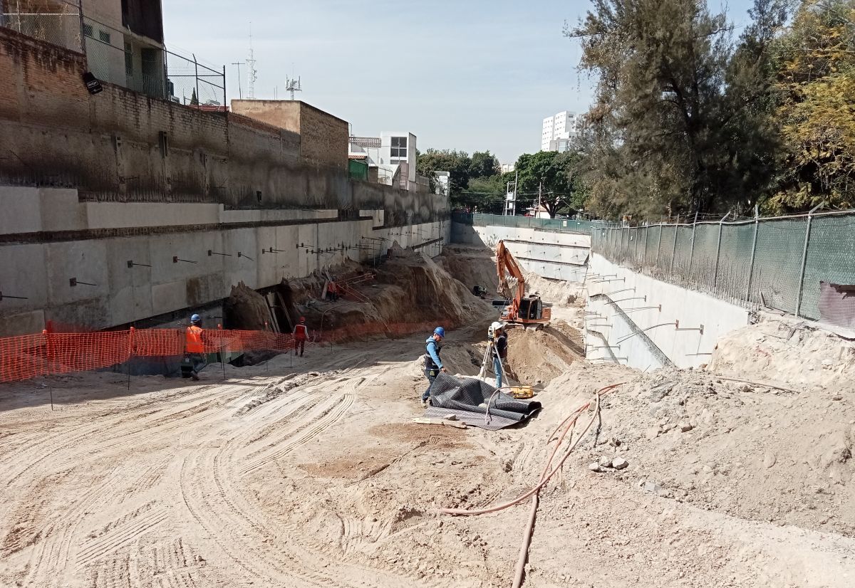 Se contempló colocar un material totalmente impermeable para evitar que el agua traspasara a la estructura, pero al iniciar los movimientos de tierra y validar la cantidad de agua presente, se determinó que era indispensable canalizar el agua a un sistema de drenaje adecuado.