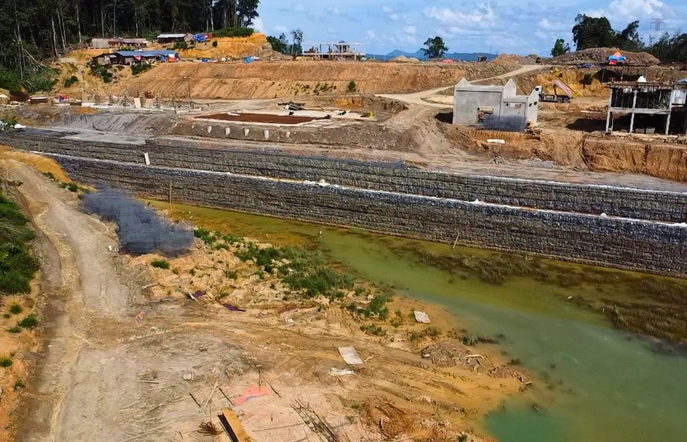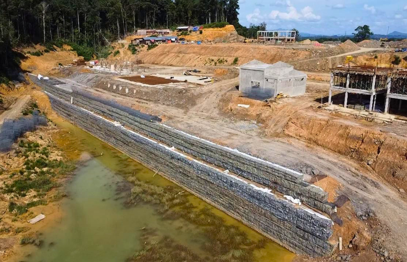 These conditions made the construction of a stable filled platform particularly demanding. Ensuring the performance of the Terramesh retaining wall system required careful attention to stability, reinforcement anchorage, and effective compaction—especially under persistently wet ground conditions.