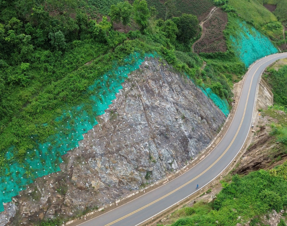 Anchored using soil nails or rock bolts according to site conditions, the system formed a continuous, flexible protective layer that adapted to the irregular slope geometry, mitigating erosion and reducing the risk of shallow failures.nectivity. The completed works reinforce the surrounding landscape, enhance road safety, and support reliable operation for decades ahead.
