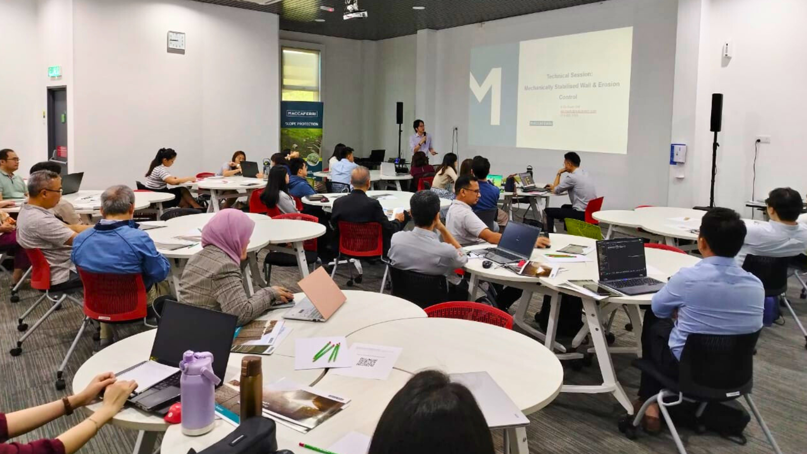 A key highlight of the seminar was the hands-on software training, where participants were introduced to MacStars 4.0 for MSE wall design and ECoMac Design for erosion control applications. Guided demonstrations allowed consultants to explore practical workflows, enabling them to better integrate digital tools into their design processes.