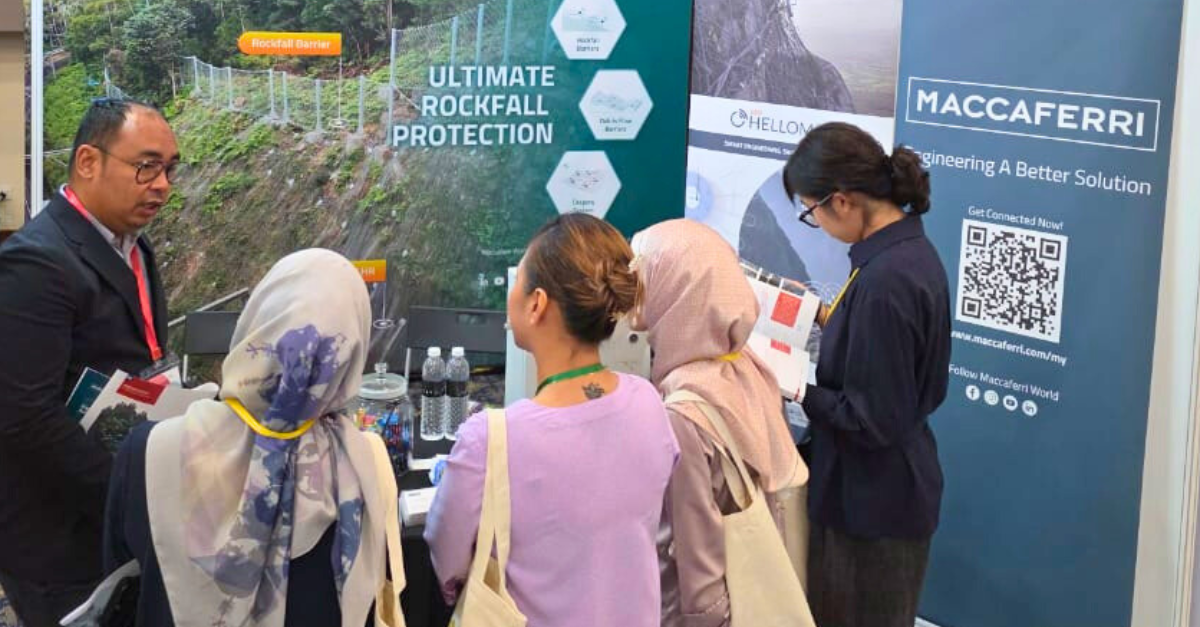 Maccaferri was proud to be among the exhibitors, presenting our state-of-the-art rockfall protection solution alongside the latest IoT-based monitoring technology – Hellomac. The combination of advanced engineering and smart technology demonstrates how innovative solutions can strengthen disaster preparedness, enhance slope stability, and reduce risks posed by rockfall hazards in vulnerable areas.