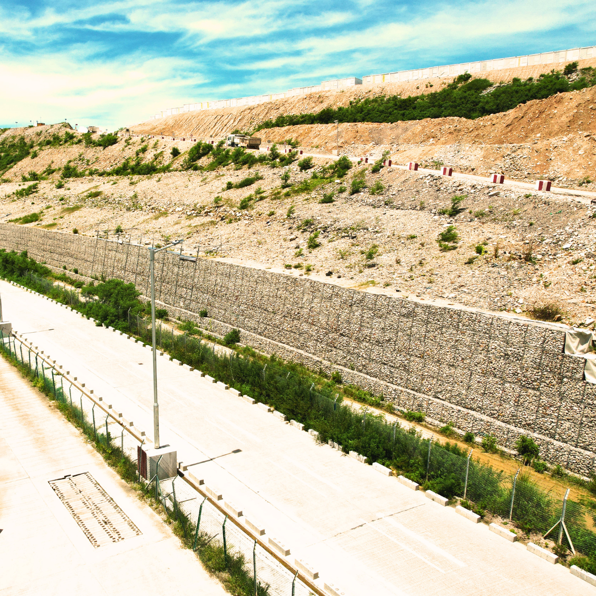 In this project, surplus fill needed to be contained within a limited footprint, requiring an efficient and reliable retaining solution. The variability and less-controlled nature of public fill materials added further complexity, demanding a system capable of accommodating differential settlement while maintaining structural integrity.