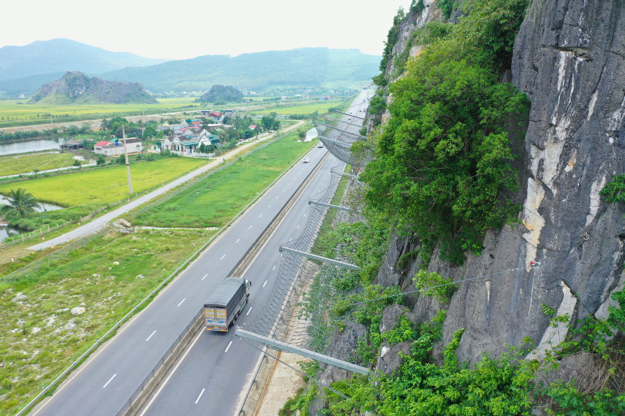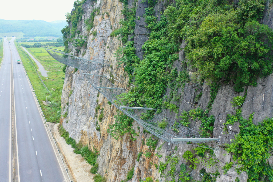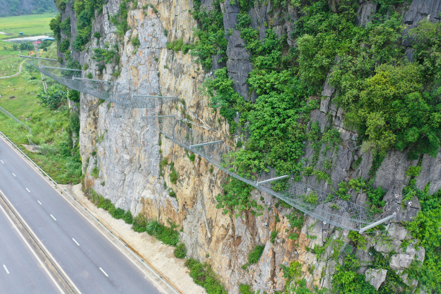 Along the Mai Son Highway QL45 in Ninh Binh and Thanh Hoa Provinces, Vietnam, several sections run adjacent to steep, weathered rock slopes prone to rockfall—especially during periods of intense rainfall. Ongoing deterioration, erosion, and unstable formations have led to frequent debris detachment, creating safety hazards and potential traffic disruptions.