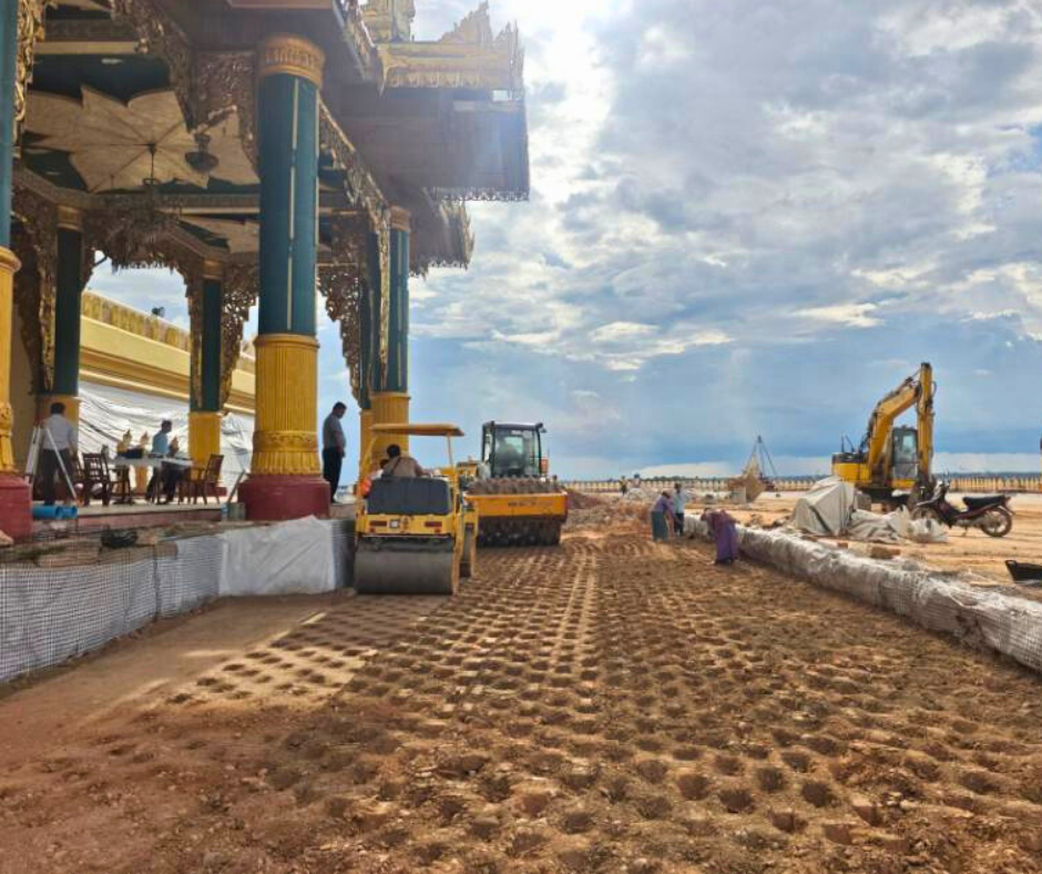The Uppatasanti Pagoda is one of Myanmar’s most significant landmarks, drawing visitors and worshippers from across the country. To preserve its sacred surroundings and ensure the safety of the many people who frequent the site, it was crucial to strengthen the pavement infrastructure.