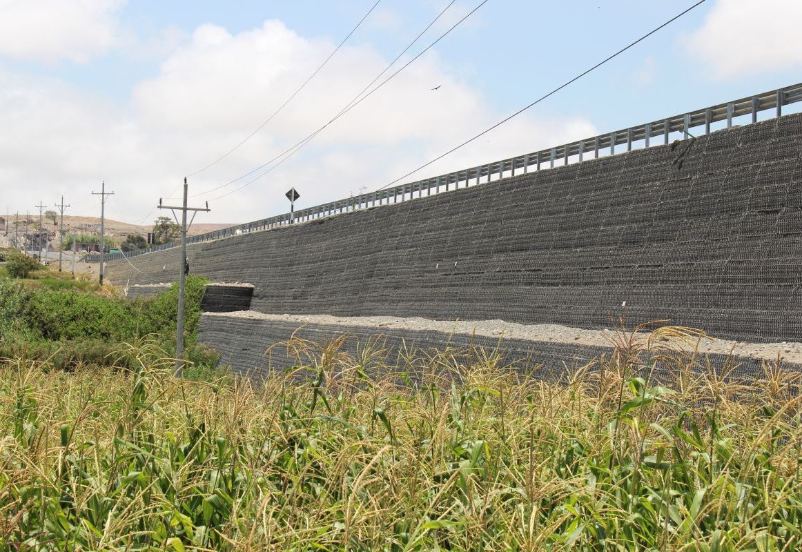 At km 24, access ramps were required for the bypass road to the town of Mejía, which would pass through agricultural land with an elevation of more than 12 m. in height. Due to the length and height of the ramp, the use of reinforced concrete was ruled out due to the high cost, and also because it was in the middle of agricultural areas, the use of embankments was not considered, with Terramesh® Verde being the best alternative.