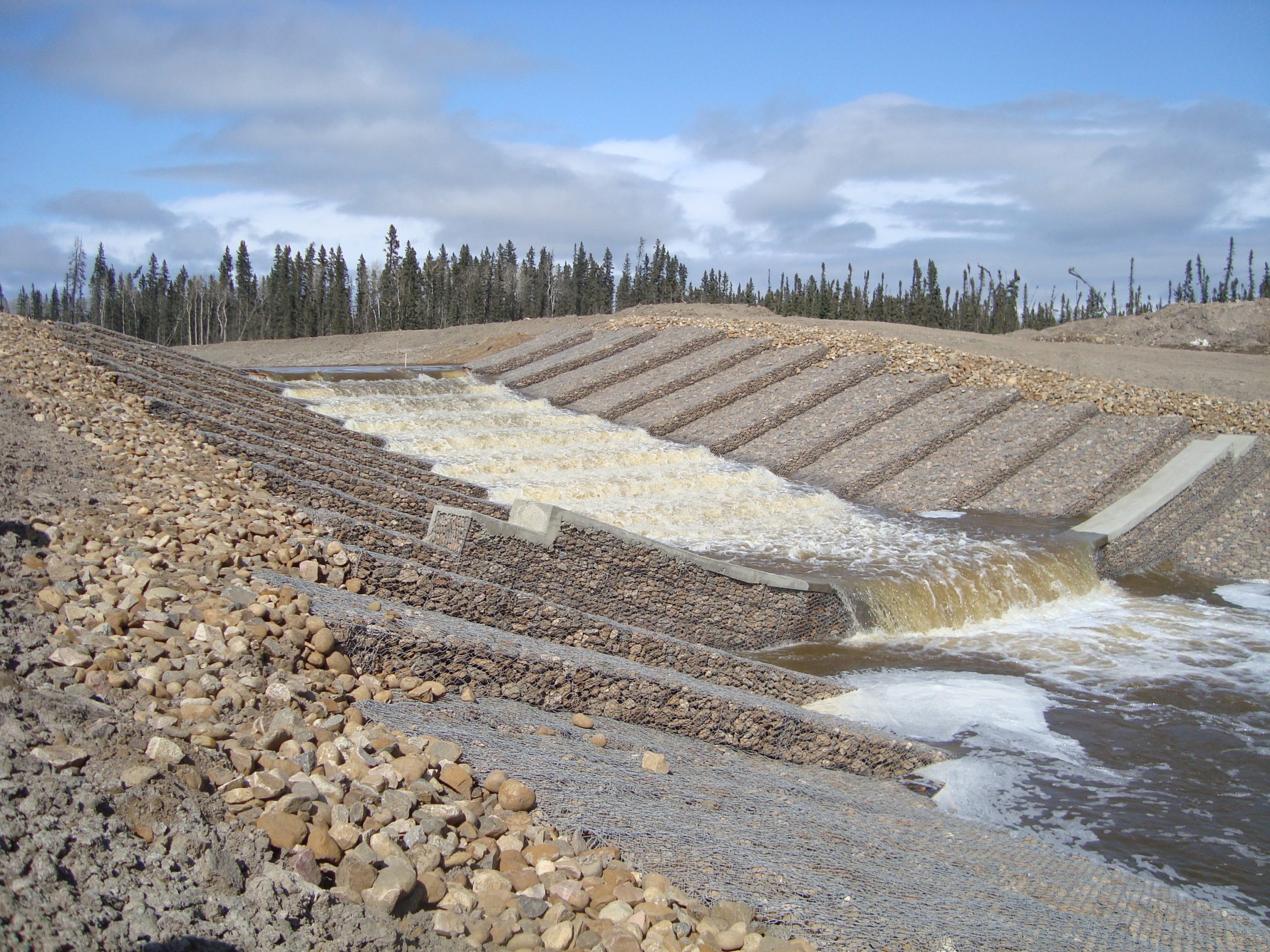 - Gabion weirs constructed from double-twist wire mesh units filled with rock