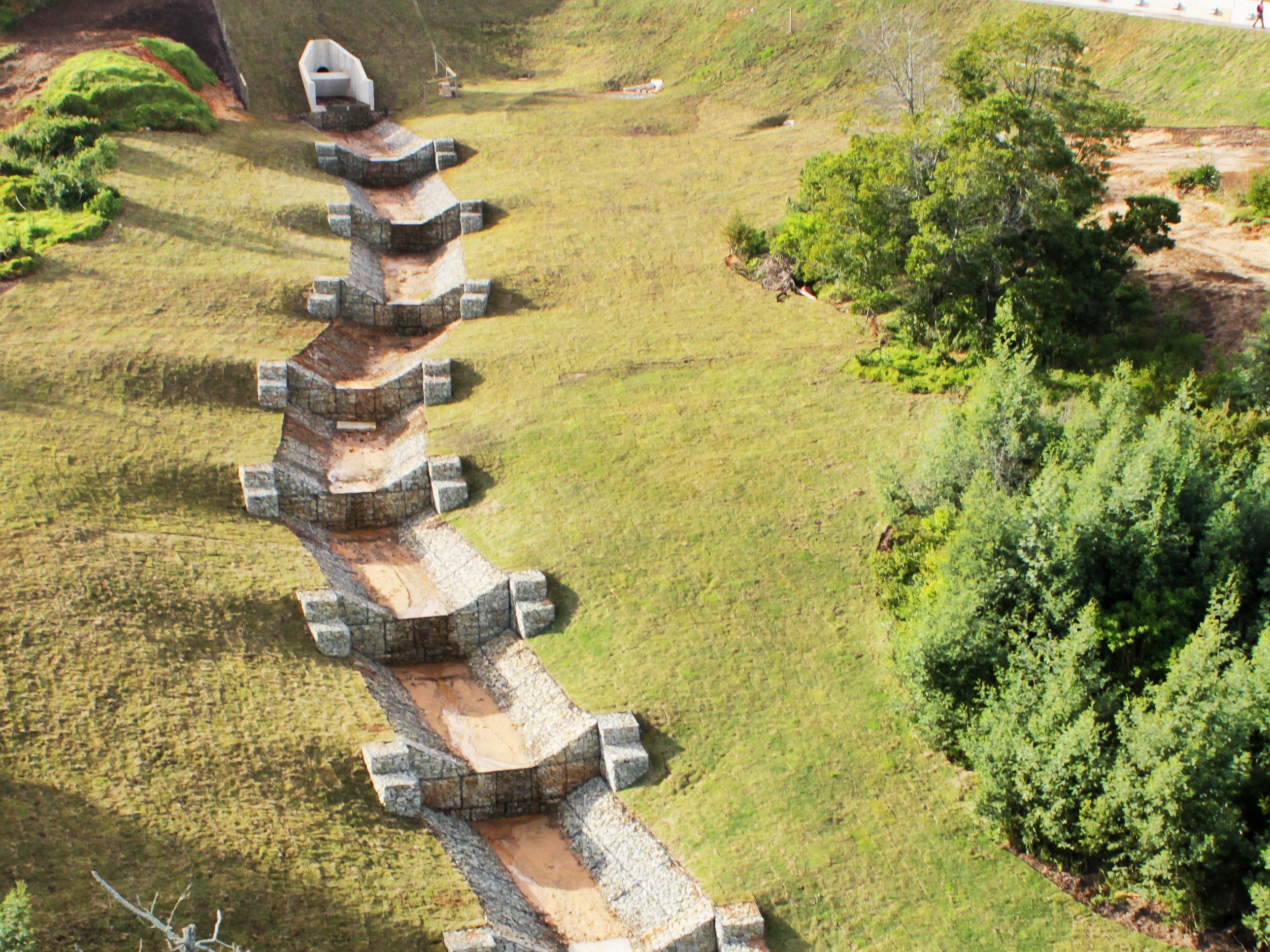 Used for water storage, flood control, and irrigation systems. Gabions and Reno Mattress systems can protect upstream and downstream faces from erosion.