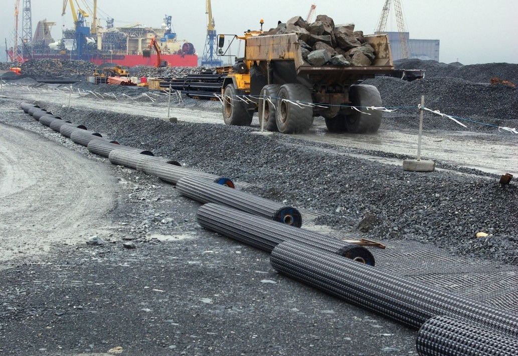 The construction of a 480m long new quay structure and  deep water berth located in the Port of Belfast has required   heavy use of geosynthetics. Ground conditions at a 50-acre   wasteland site at Belfast Harbour were so poor that a major   programme of stabilisation and improvement was required   to allow the construction of a £50m trans-shipment and   storage facility required to support the offshore wind   industry.