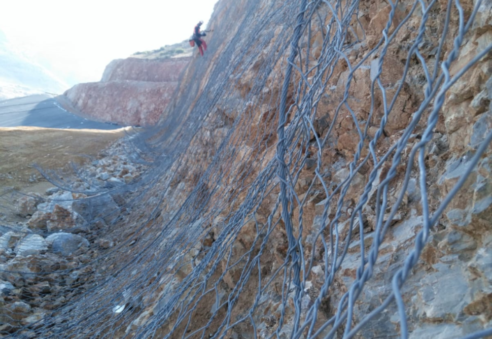 In accordance with the urgency of the situation, the size of the potentially dangerous rocks on the slope and in line with the technical and economic conditions, Steel Grid HR100 has been installed on the steep slopes running along the waste storage area. The total area of approximately 30,000 m² has been installed in a time period of 4-6 weeks under the cooperation with our professional mountainer crew.