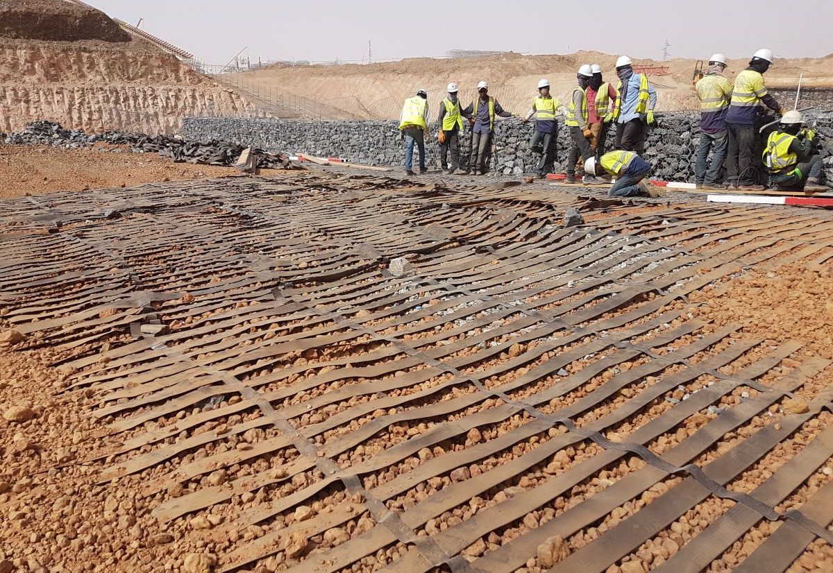 In the context of the operation of the Tasiast gold mine in the Adrar Massif (Mauritanian desert), the mining company KINROSS had a primary crusher wall constructed, requiring the construction of two side walls with a height of 32.50 meters. The soil reinforcement technique with a vertical mineral facing, Terramesh® System, developed by Maccaferri, was chosen. The construction oversight company AUSENCO was impressed by the performance of the Terramesh® system as well as the technical support provided by Maccaferri. This is the tallest Terramesh system wall in the field of mining applications!