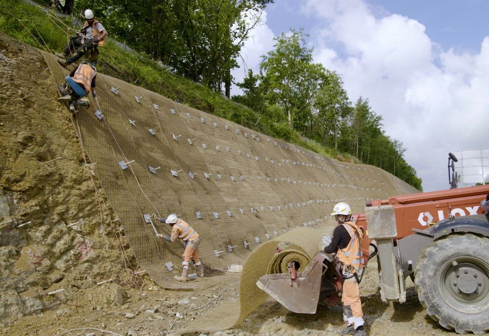 MacMat HS is the next-generation of high performance geomats, combining a three-dimensional matrix polymeric geomat reinforced with Maccaferri’s Steelgrid system. It is used for demanding slope face stabilisation applications which require a combination of erosion protection and superficial stabilisation.