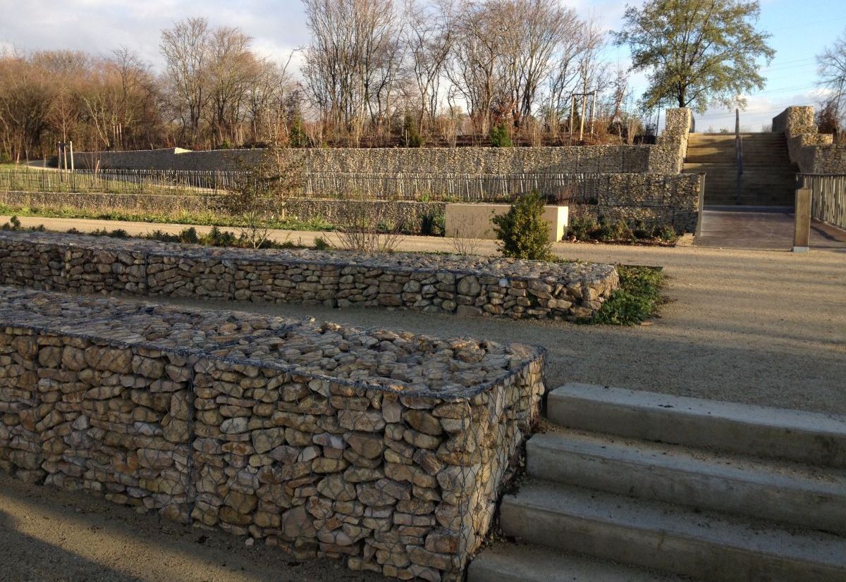 The Conseil Général 92 chose double-twist gabion cages because they allow the filling materials to show through easily. The infill stone chosen comes from the Saint Maximin basin (60), which is better known for supplying stone for historic monuments.