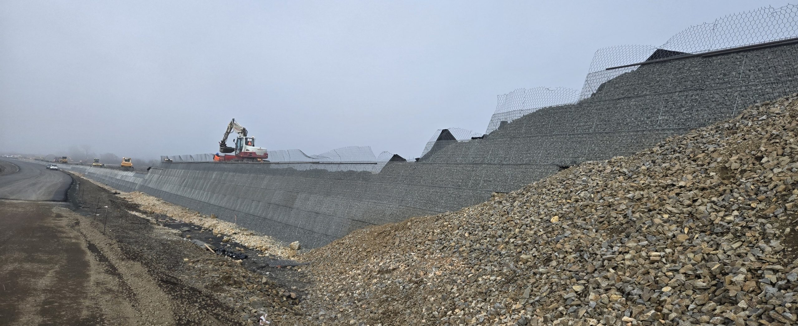 Lícna strana od vozovky komunikácie je tvorená vystuženou zemnou konštrukciou s kamenným lícom v sklone 70° – systém Mineral Terramesh®. Tento systém bol zvolený ako najvhodnejšie riešenie z dôvodu vysokej životnosti a rýchlej montáže, keďže ide o prefabrikovaný prvok.