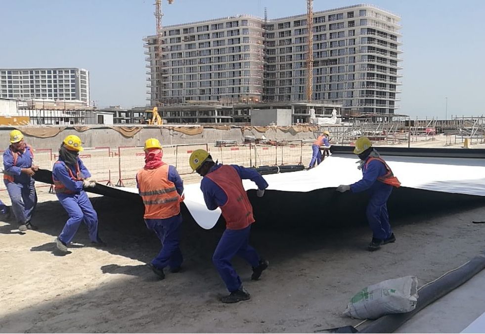 Ithmaar Development Company is developing the reclaimed island of Dilmunia on the north-eastern coast of the island of Muharraq, Kingdom of Bahrain. The development project includes the construction of a nearly 1.5 km leisure canal (Dilmunia Grand Canal), which will be the central attraction of the island’s architectural design, including water activities, fountains, cascades, and waterfalls. Dilmunia canal is elevated few meters above the surrounding ground level, and any potential leaks may become visible and are highly undesirable. Therefore, the project foresees to waterproof the canal structure with various geosynthetic products, including several complementary watertight and drainage elements either installed inside and outside the peripheral walls.