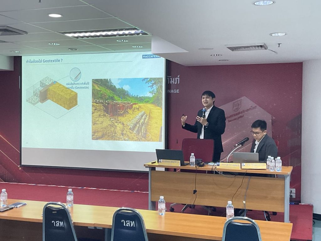 ภายในงานได้กล่าวถึงบทบาทสำคัญของวัสดุจีโอซินเทติกส์ในการเสริมกำลังดินและเพิ่มความมั่นคงของโครงสร้างทางวิศวกรรม โดยเน้นการเลือกใช้อย่างถูกต้องตามมาตรฐาน เพื่อยืดอายุการใช้งานของโครงสร้างและยกระดับความปลอดภัยอย่างยั่งยืน