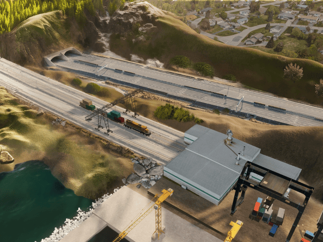 - ถนนและทางรถไฟเข้าสู่ท่าเรือ