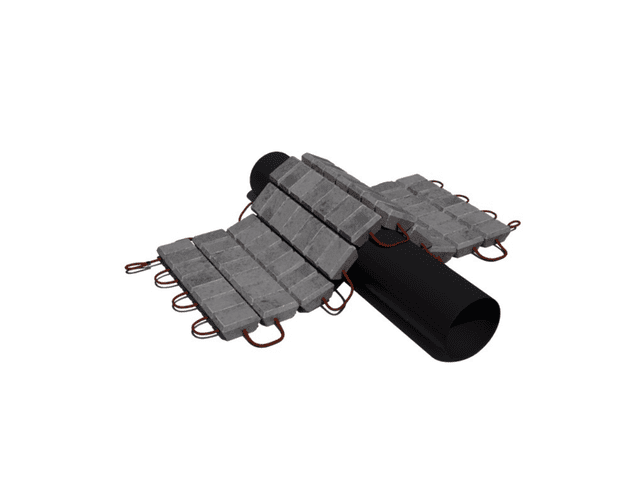 แมทเทรสยืดหยุ่นบรรจุยางมะตอย เสริมด้วยโครงตาข่ายลวดเหล็กและจีโอเท็กซ์ไทล์ มีความเหนียวตัวสูง ทนต่อแรงกระแทก และเหมาะสำหรับจุดตัดท่อ แท่นขุดเจาะ และโครงสร้างท่าเรือ
