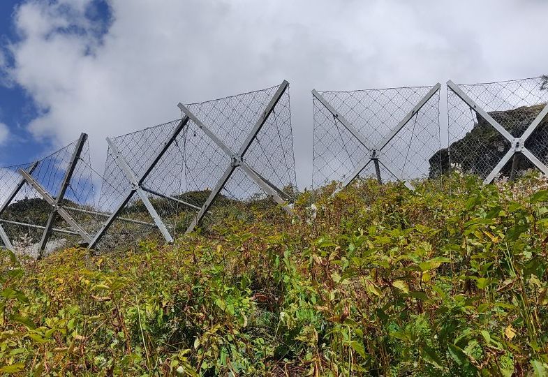 Based on the prevailing difficult site conditions and short construction window available, flexible snow barriers comprising of snow umbrella (Snow ErdoX) units are selected for left gully of MSP 12. Snow ErdoX units are advanced avalanche protection system, which are self stable and has metallic structure with pyramid shape, lesser weight, easy to transport and quick to install. As the snow accumulates on the slope, these innovative control measures retain the accumulated snow pack, thus preventing the initiation of an avalanche. Based on functional design, 7 lines of Snow ErdoX barriers (149 no.s (external reinforced units and internal unreinforced units) are constructed to constitute a total stretch length of 583.05m. The design of Snow Erdox is based on Swiss technical guideline(2007). The lines are spanning above and below the highway based on the min. spacing calculated and overall identified formation area with individual Snow ErdoX units installed at distance of a 50 cm from each other(to allow the passage between the structures, which is prevented by traditional barriers). The end units on each of the barrier lines shall be of reinforced type. The foundation system of Snow ErdoX units are of anchors -SDA-32mm and pull out tests are performed to verify the bond strength considerations.