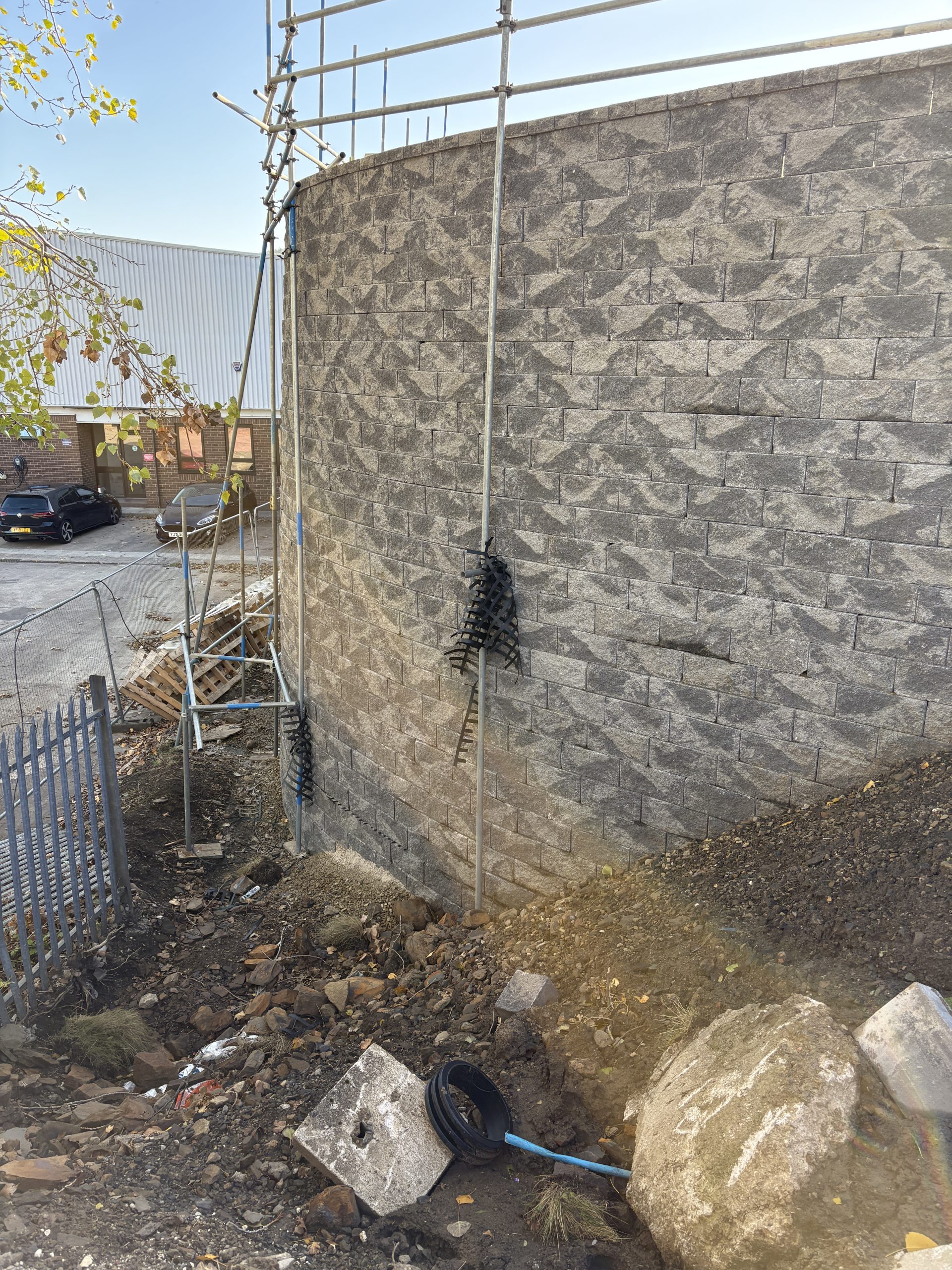 The steep gradient of the terrain meant that a conventional cut-and-fill approach or the use of a natural or steepened slope would not provide the necessary horizontal footprint to support the new car park platform. Additionally, spatial constraints and proximity to existing infrastructure limited the feasibility of extensive earthworks or large-scale excavation. A robust and space-efficient retaining solution was required to create a stable, level platform while maintaining structural integrity and minimising environmental impact.