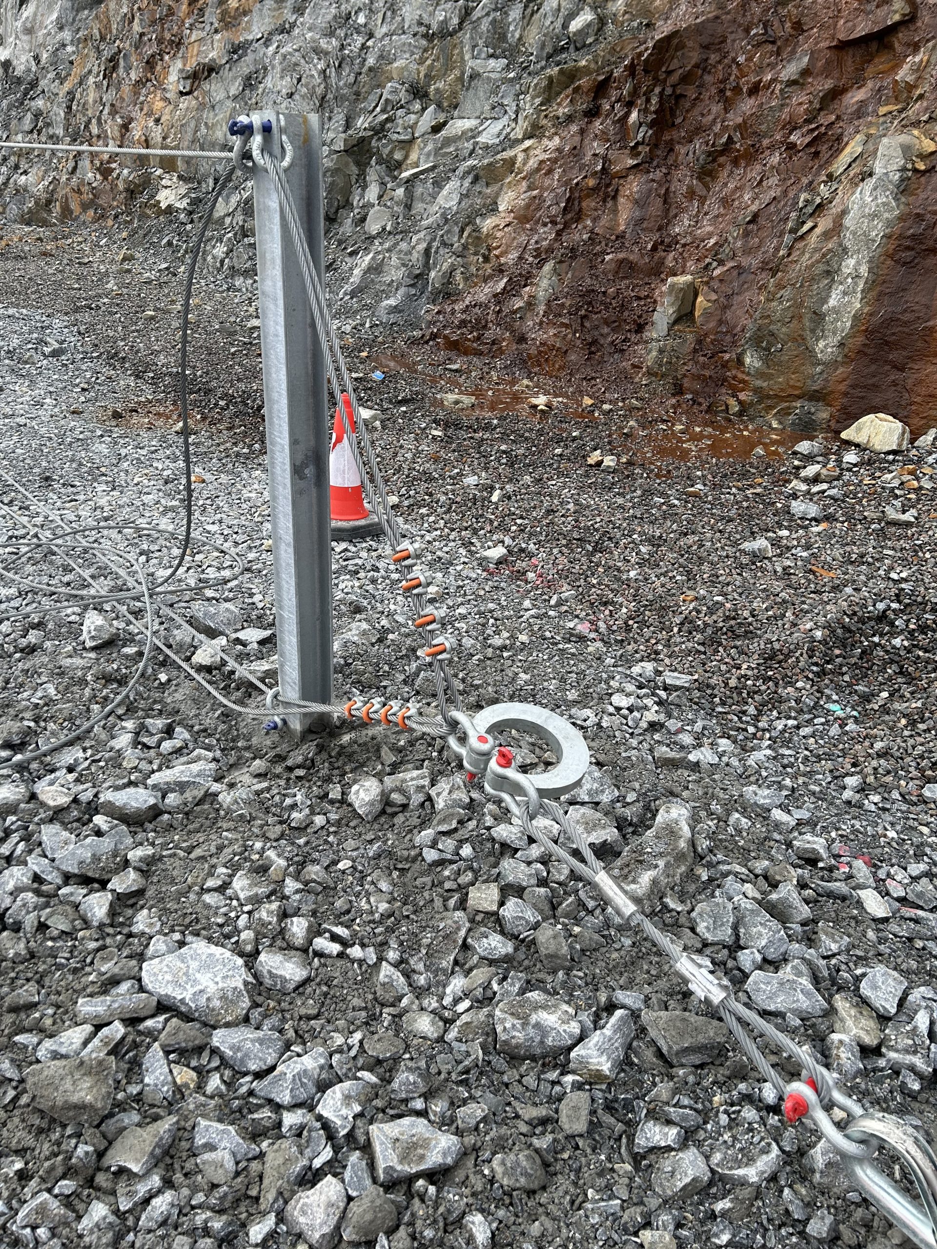 Maccaferri was contacted by local fencing contractor Dave Breeze, on behalf of BAM Nuttall, to provide a low-height barrier system to mitigate this risk. After site assessments, rockface modelling, and trajectory simulations using Rocscience Rocfall 2, the RB35 (35kJ) low energy barrier (LEB) system at 1.35m height was selected as suitable for the site’s needs. Maccaferri recommended its Galmac C3 metallic coating to ensure a design life of over 50 years in C3 environmental conditions.