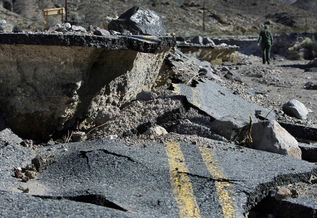 On October 18, 2015, a storm caused extensive flash flooding in Grapevine Canyon and Scotty’s Castle area, in northern Death Valley National Park. This area averages only four inches of rain per year, but over three inches or rain hail had fallen in a five hour period. Floodwaters ran at 3,000 cubic feet per second, cutting deep channels, destroying roads, and depositing mud up to four feet deep in and around buildings at Scotty’s Castle Area. Over 20 power poles and a mile of concrete fence posts were washed away. The flood ripped up sections of the road to Scotty’s Castle. Debris piled up around buildings and covered the parking ad picnic areas. The 2015 flood at Scotty’s Castle was exceptional. Nothing like it has occurred in the hundredyear history of the site. With the challenge of working in a remote area impacting costs, the park sustained $50 million in damages.