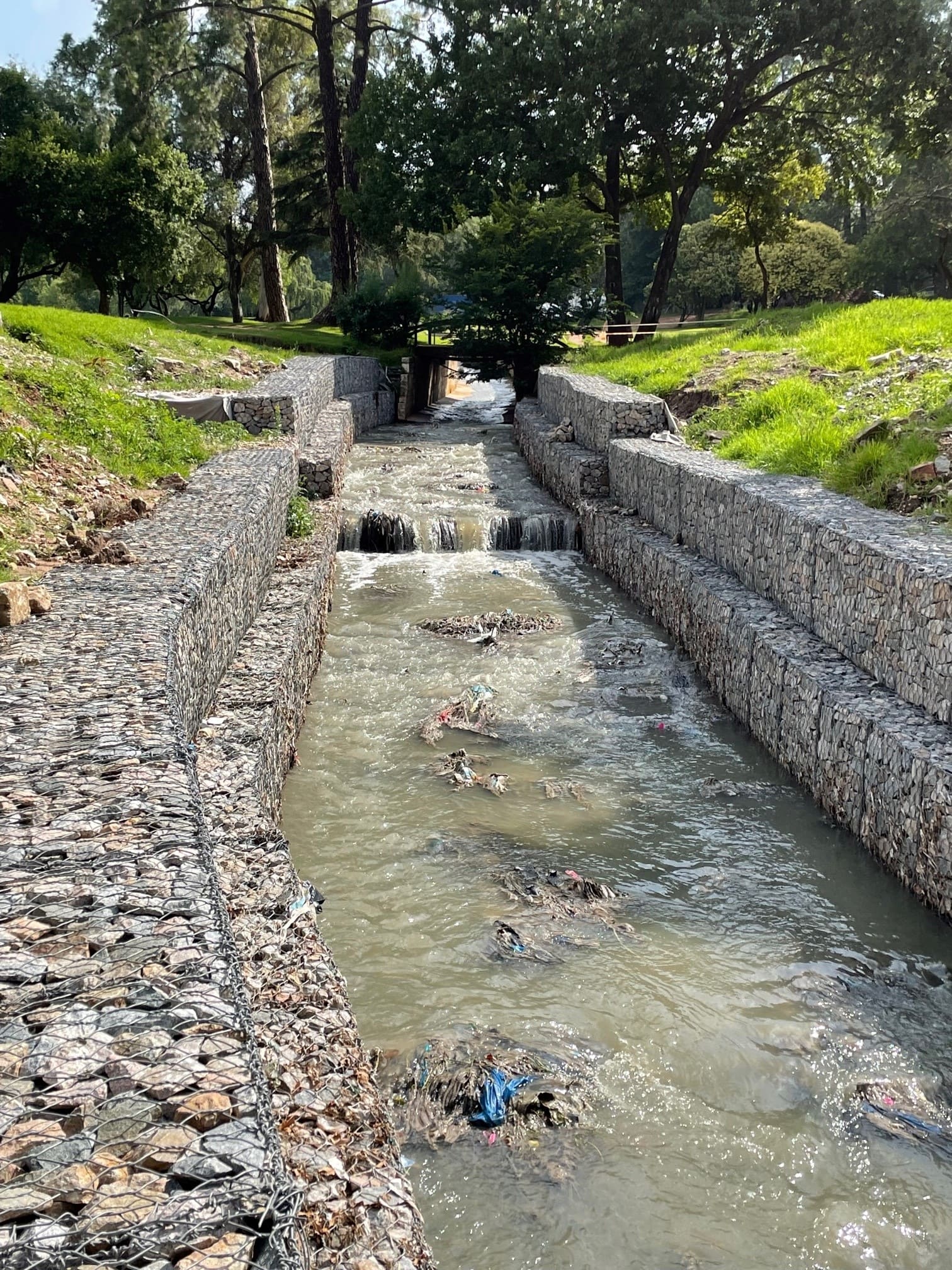 The Killarney Golf Course is situated parallel to the M1 highway, which has a storm water network running through it. This is one of the catchments for Parktown, Killarney and Houghton (Johannesburg). The rapid urbanisation of these areas has resulted in an increase in impermeable surfaces. This has led to a higher volume of water flowing through the storm water channel. This caused extensive erosion of the banks and multiple failures of earth-retaining structures implemented within the channel. The client required a sustainable solution that could effectively manage storm water flow surges while preserving the golf course’s natural beauty. Maccaferri designed, supplied, and supervised the solution construction.